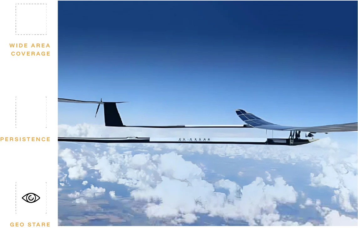 HAPS offered in collaboration with Mira Aerospace, the HAPS is a next-generation stratospheric platform that bridges the gap between conventional aircraft and satellites. Operating at high altitudes with modular payload options, it has the capability to stay aloft for very long durations, providing ‘geo stare’ capability over vast geographical areas.
